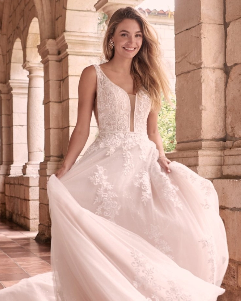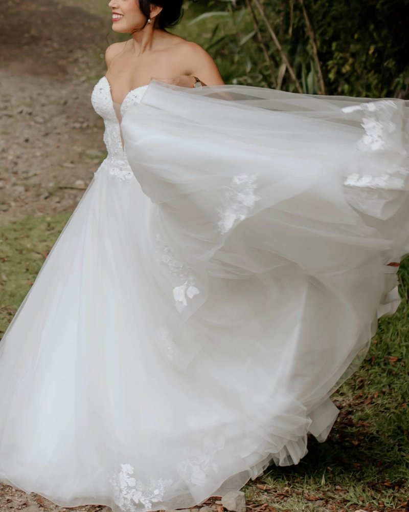 Nuestras colecciones incluyen vestidos nuevos y semi-nuevos de reconocidas marcas ideales para novias que valoran la elegancia y la sostenibilidad hasta un 70% menos de su valor original.
